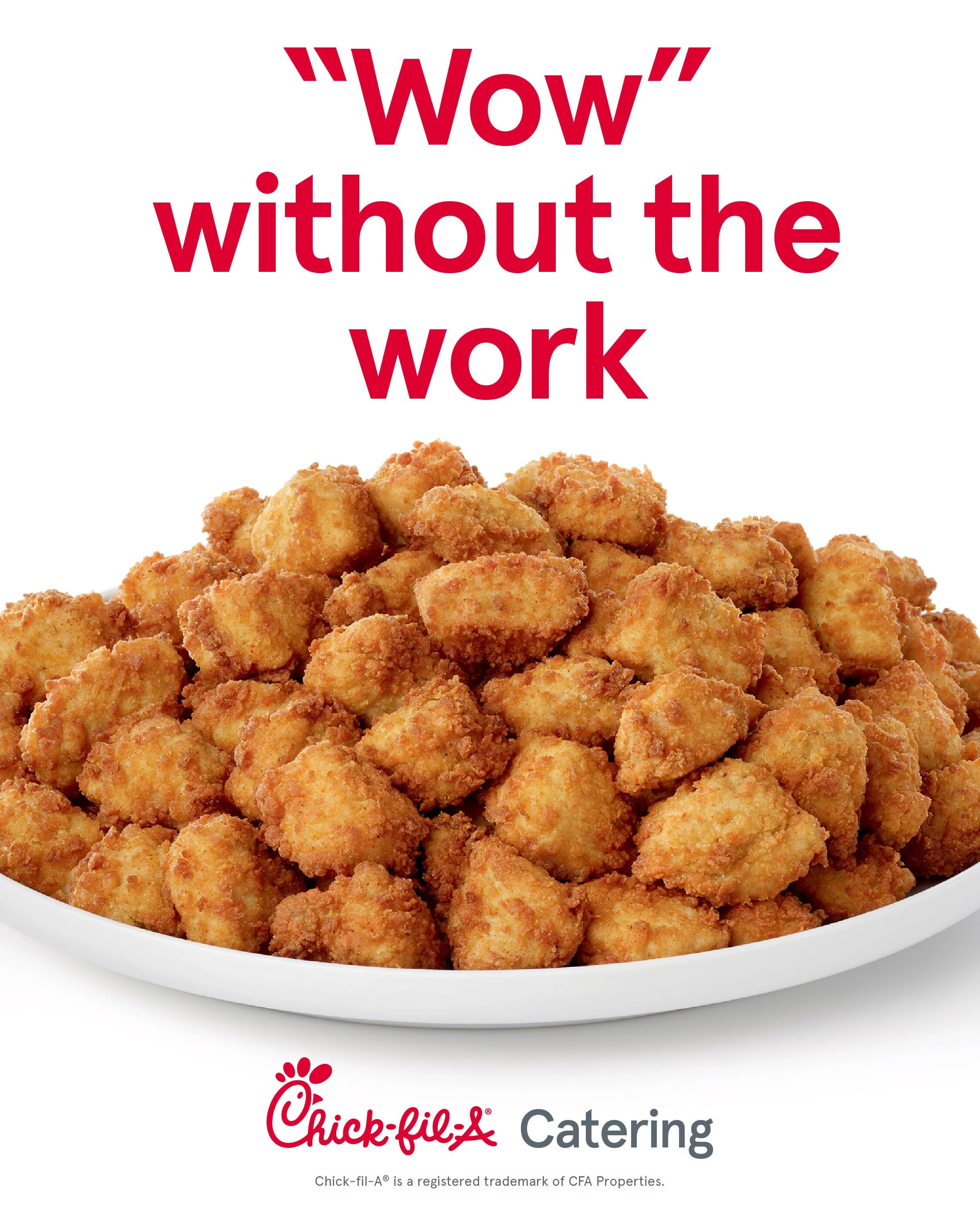 Hosting a gathering or large event? Share the joy of Chick-fil-A through our catering menu. We offer individual box meals and tray assortments tailored to the specific needs of your event. Start a catering order online today!